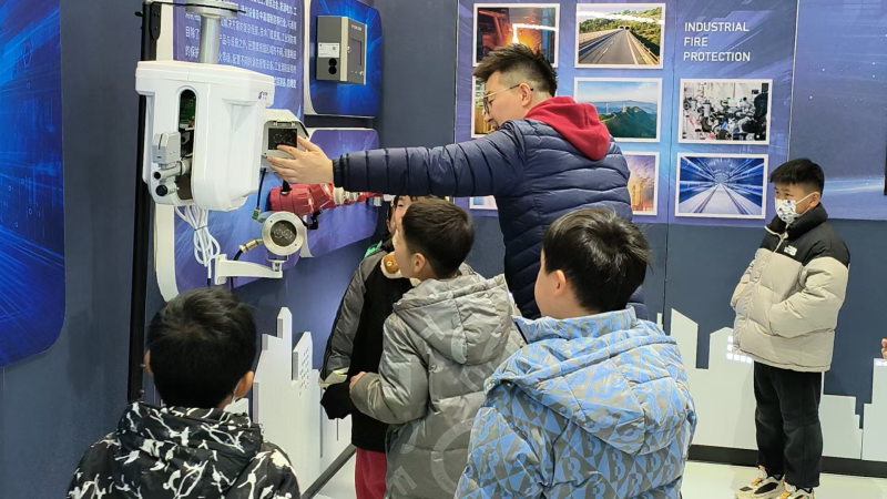 活動(dòng)當(dāng)日,依愛消防技術(shù)支持部負(fù)責(zé)人王龍君負(fù)責(zé)組織接待。在接待人員的引導(dǎo)下居民和兒童步入消防設(shè)備展示區(qū)。在這里,各式各樣先進(jìn)的消防產(chǎn)品整齊陳列,水炮產(chǎn)品、智慧消防、火災(zāi)報(bào)警系統(tǒng)等一一呈現(xiàn)在大家眼前。綜合管理部負(fù)責(zé)人張奇詳細(xì)為大家講解了消防公司的發(fā)展歷程,產(chǎn)品組成與作用。在模擬火災(zāi)逃生體驗(yàn)區(qū),居民和兒童在工作人員的悉心指導(dǎo)下,嚴(yán)格按照正確的逃生姿勢和既定路線有序撤離,成功完成了一次逼真的模擬火災(zāi)逃生演練。通過此次演練,大家不僅熟悉了火災(zāi)發(fā)生時(shí)的應(yīng)對流程,更在實(shí)踐中鍛煉了應(yīng)急反應(yīng)能力和團(tuán)隊(duì)協(xié)作能力。